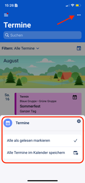 Sie können Termine entweder gesammelt oder einzeln in Ihren Smartphone-Kalender importieren.