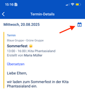 Tippen Sie in der Terminvorschau rechts auf das „Kalender hinzufügen“-Symbol.